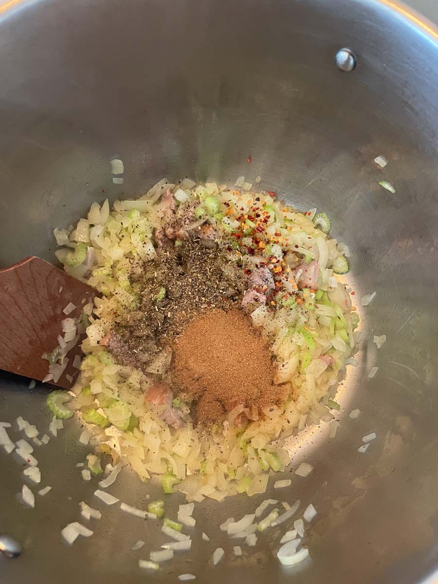 Traditionnellement cuisinés avec des morceaux de porc fumé (ham hocks), ils étaient préparés dans de grandes marmites au feu de bois. Cette version respecte l’esprit originel : fumage préalable de la viande, cuisson lente et bouillon nourrissant.